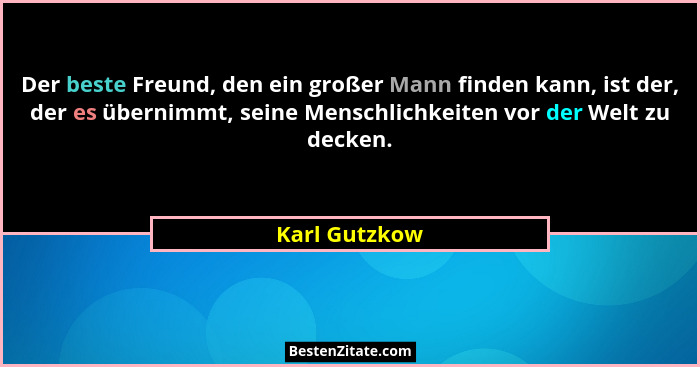 Der beste Freund, den ein großer Mann finden kann, ist der, der es übernimmt, seine Menschlichkeiten vor der Welt zu decken.