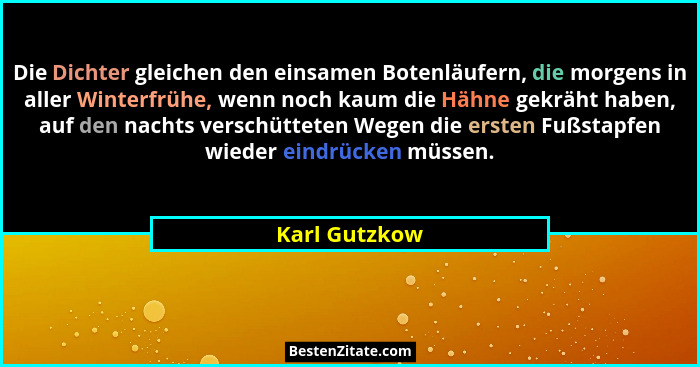 Die Dichter gleichen den einsamen Botenläufern, die morgens in aller Winterfrühe, wenn noch kaum die Hähne gekräht haben, auf den nachts verschütteten Wegen die ersten Fußstapfen wieder eindrücken müssen.