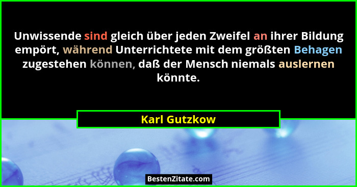 Unwissende sind gleich über jeden Zweifel an ihrer Bildung empört, während Unterrichtete mit dem größten Behagen zugestehen können, daß der Mensch niemals auslernen könnte.