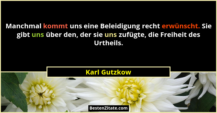 Manchmal kommt uns eine Beleidigung recht erwünscht. Sie gibt uns über den, der sie uns zufügte, die Freiheit des Urtheils.
