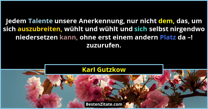 Jedem Talente unsere Anerkennung, nur nicht dem, das, um sich auszubreiten, wühlt und wühlt und sich selbst nirgendwo niedersetzen kann, ohne erst einem andern Platz da –! zuzurufen.