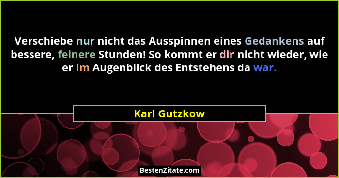 Verschiebe nur nicht das Ausspinnen eines Gedankens auf bessere, feinere Stunden! So kommt er dir nicht wieder, wie er im Augenblick des Entstehens da war.