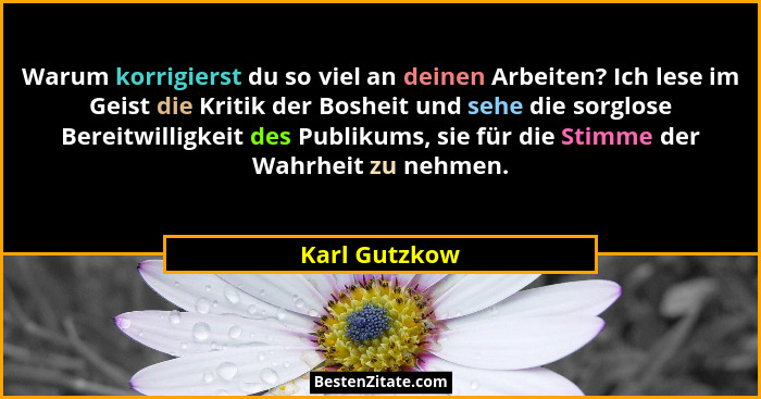 Warum korrigierst du so viel an deinen Arbeiten? Ich lese im Geist die Kritik der Bosheit und sehe die sorglose Bereitwilligkeit des Publikums, sie für die Stimme der Wahrheit zu nehmen.