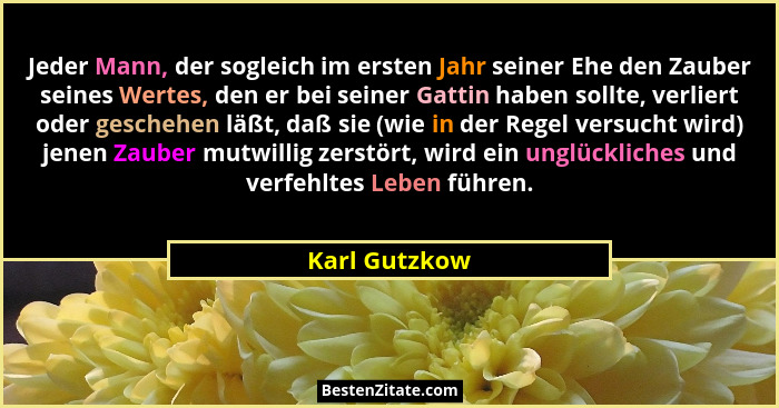 Jeder Mann, der sogleich im ersten Jahr seiner Ehe den Zauber seines Wertes, den er bei seiner Gattin haben sollte, verliert oder geschehen läßt, daß sie (wie in der Regel versucht wird) jenen Zauber mutwillig zerstört, wird ein unglückliches und verfehltes Leben führen.