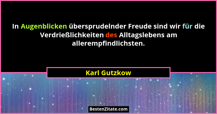 In Augenblicken übersprudelnder Freude sind wir für die Verdrießlichkeiten des Alltagslebens am allerempfindlichsten.