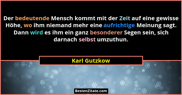 Der bedeutende Mensch kommt mit der Zeit auf eine gewisse Höhe, wo ihm niemand mehr eine aufrichtige Meinung sagt. Dann wird es ihm ein ganz besonderer Segen sein, sich darnach selbst umzuthun.