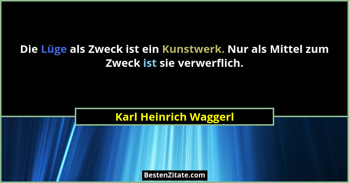 Die Lüge als Zweck ist ein Kunstwerk. Nur als Mittel zum Zweck ist sie verwerflich.