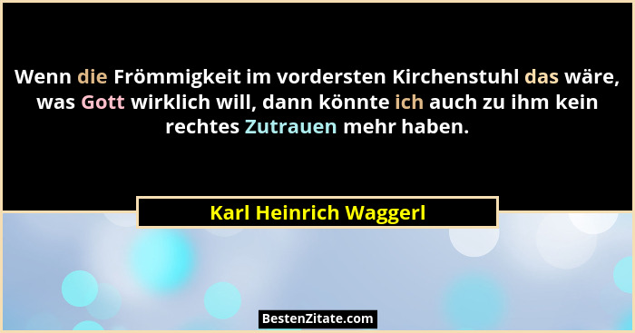 Wenn die Frömmigkeit im vordersten Kirchenstuhl das wäre, was Gott wirklich will, dann könnte ich auch zu ihm kein rechtes Zutrauen mehr haben.
