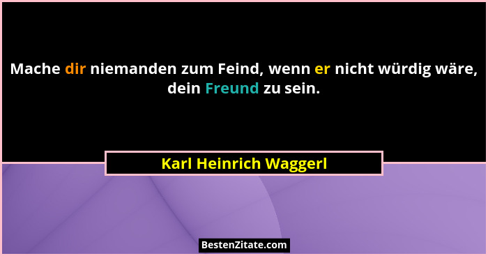 Mache dir niemanden zum Feind, wenn er nicht würdig wäre, dein Freund zu sein.