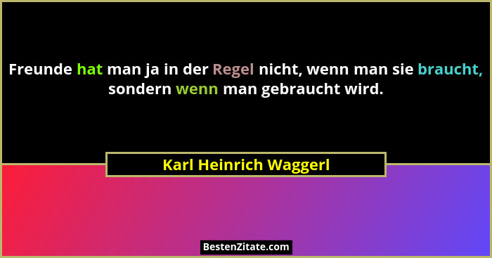 Freunde hat man ja in der Regel nicht, wenn man sie braucht, sondern wenn man gebraucht wird.