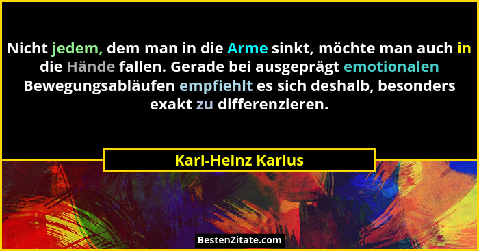 Nicht jedem, dem man in die Arme sinkt, möchte man auch in die Hände fallen. Gerade bei ausgeprägt emotionalen Bewegungsabläufen empfiehlt es sich deshalb, besonders exakt zu differenzieren.