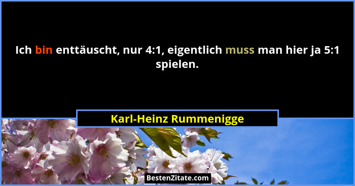 Ich bin enttäuscht, nur 4:1, eigentlich muss man hier ja 5:1 spielen.