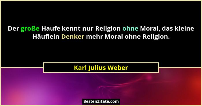 Der große Haufe kennt nur Religion ohne Moral, das kleine Häuflein Denker mehr Moral ohne Religion.