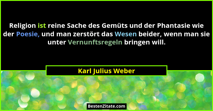Religion ist reine Sache des Gemüts und der Phantasie wie der Poesie, und man zerstört das Wesen beider, wenn man sie unter Vernunftsregeln bringen will.