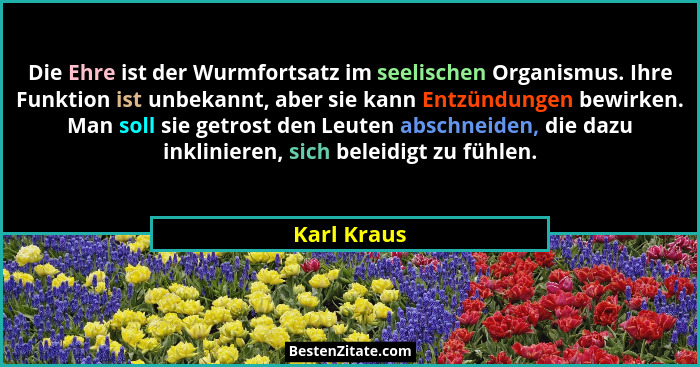 Die Ehre ist der Wurmfortsatz im seelischen Organismus. Ihre Funktion ist unbekannt, aber sie kann Entzündungen bewirken. Man soll sie getrost den Leuten abschneiden, die dazu inklinieren, sich beleidigt zu fühlen.