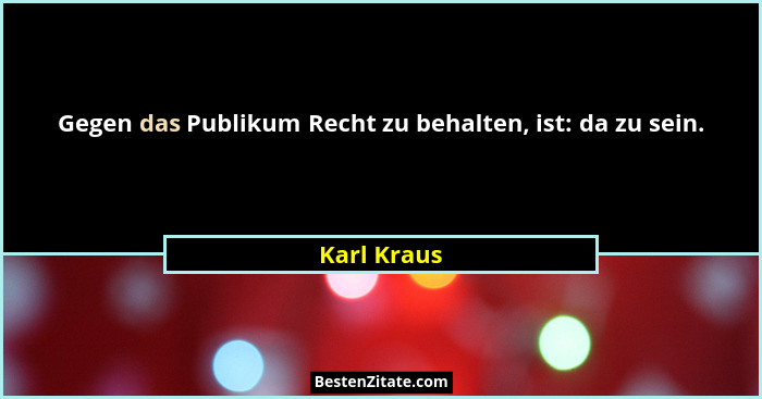 Gegen das Publikum Recht zu behalten, ist: da zu sein.