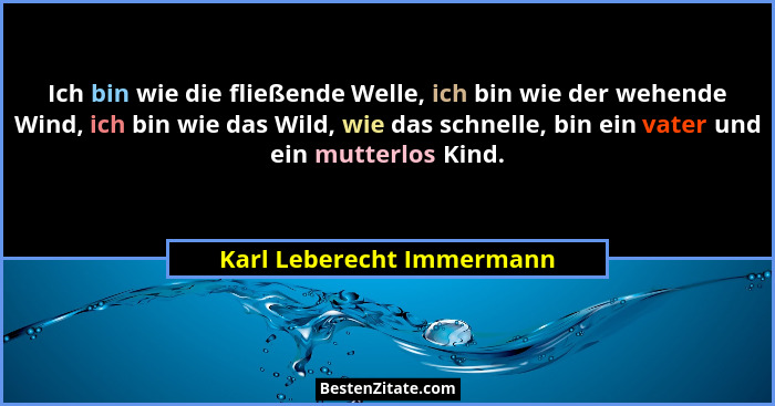Ich bin wie die fließende Welle, ich bin wie der wehende Wind, ich bin wie das Wild, wie das schnelle, bin ein vater und ein mutterlos Kind.