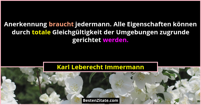 Anerkennung braucht jedermann. Alle Eigenschaften können durch totale Gleichgültigkeit der Umgebungen zugrunde gerichtet werden.