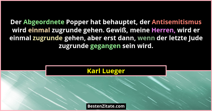 Der Abgeordnete Popper hat behauptet, der Antisemitismus wird einmal zugrunde gehen. Gewiß, meine Herren, wird er einmal zugrunde gehen, aber erst dann, wenn der letzte Jude zugrunde gegangen sein wird.