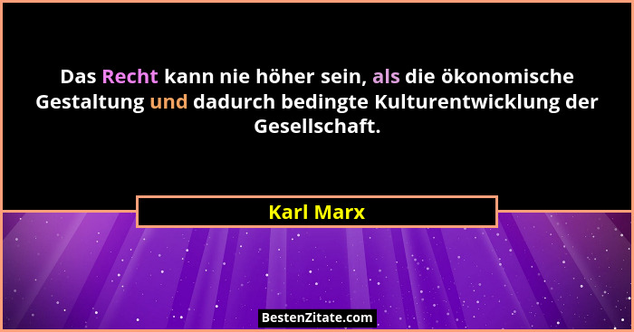 Das Recht kann nie höher sein, als die ökonomische Gestaltung und dadurch bedingte Kulturentwicklung der Gesellschaft.