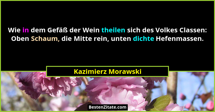 Wie in dem Gefäß der Wein theilen sich des Volkes Classen: Oben Schaum, die Mitte rein, unten dichte Hefenmassen.