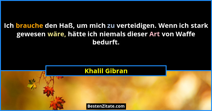 Ich brauche den Haß, um mich zu verteidigen. Wenn ich stark gewesen wäre, hätte ich niemals dieser Art von Waffe bedurft.