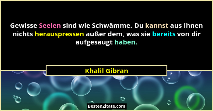 Gewisse Seelen sind wie Schwämme. Du kannst aus ihnen nichts herauspressen außer dem, was sie bereits von dir aufgesaugt haben.