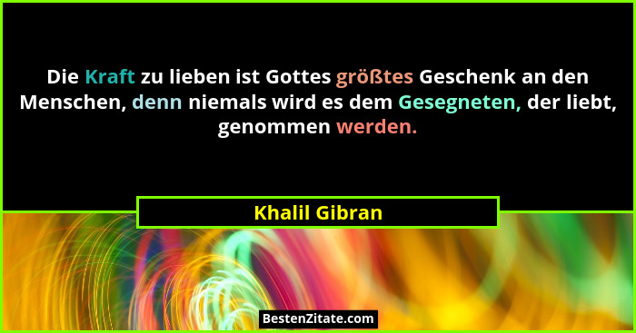 Die Kraft zu lieben ist Gottes größtes Geschenk an den Menschen, denn niemals wird es dem Gesegneten, der liebt, genommen werden.