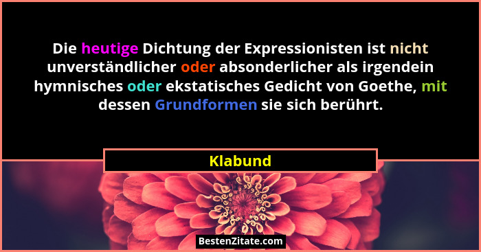Die heutige Dichtung der Expressionisten ist nicht unverständlicher oder absonderlicher als irgendein hymnisches oder ekstatisches Gedicht von Goethe, mit dessen Grundformen sie sich berührt.