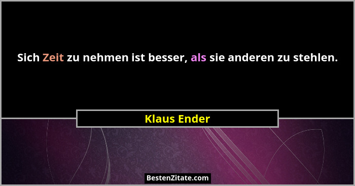 Sich Zeit zu nehmen ist besser, als sie anderen zu stehlen.