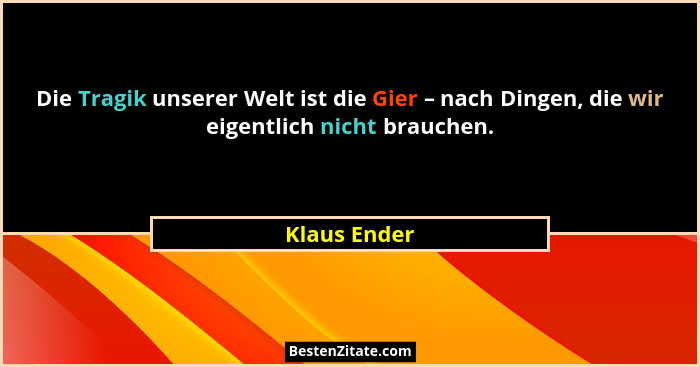 Die Tragik unserer Welt ist die Gier – nach Dingen, die wir eigentlich nicht brauchen.