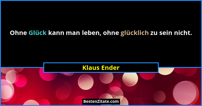 Ohne Glück kann man leben, ohne glücklich zu sein nicht.