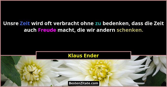 Unsre Zeit wird oft verbracht ohne zu bedenken, dass die Zeit auch Freude macht, die wir andern schenken.