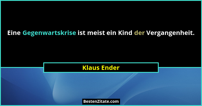 Eine Gegenwartskrise ist meist ein Kind der Vergangenheit.