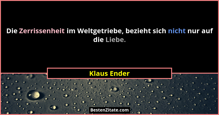 Die Zerrissenheit im Weltgetriebe, bezieht sich nicht nur auf die Liebe.