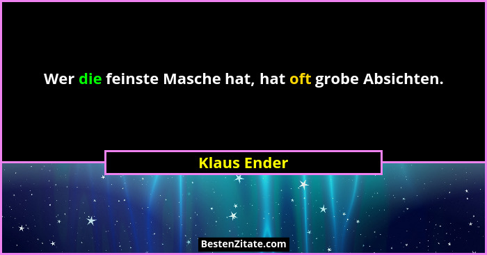 Wer die feinste Masche hat, hat oft grobe Absichten.