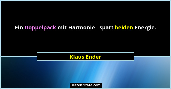 Ein Doppelpack mit Harmonie - spart beiden Energie.
