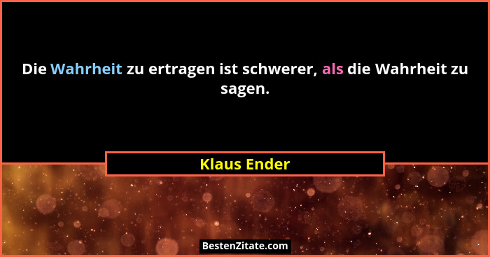 Die Wahrheit zu ertragen ist schwerer, als die Wahrheit zu sagen.