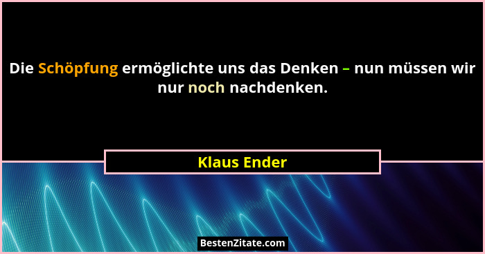 Die Schöpfung ermöglichte uns das Denken – nun müssen wir nur noch nachdenken.