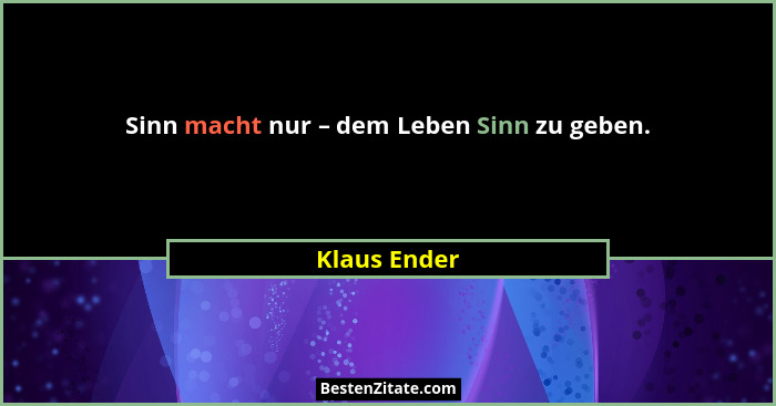 Sinn macht nur – dem Leben Sinn zu geben.