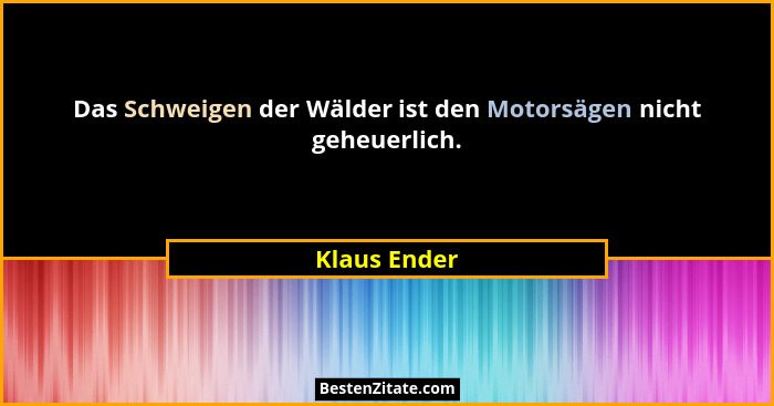 Das Schweigen der Wälder ist den Motorsägen nicht geheuerlich.