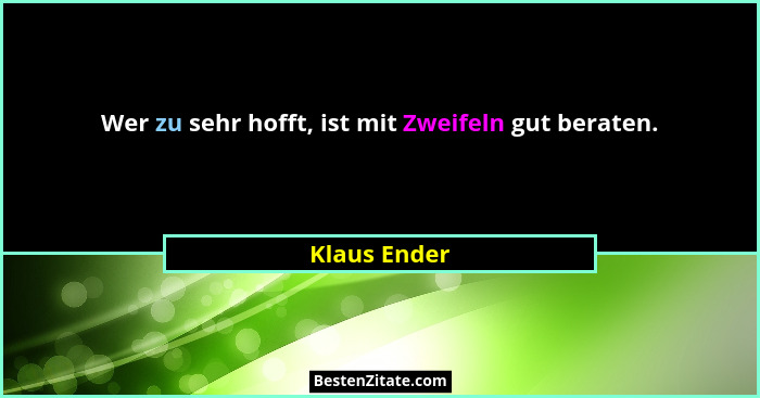 Wer zu sehr hofft, ist mit Zweifeln gut beraten.