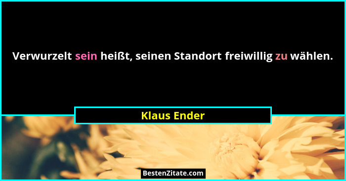 Verwurzelt sein heißt, seinen Standort freiwillig zu wählen.