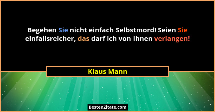 Begehen Sie nicht einfach Selbstmord! Seien Sie einfallsreicher, das darf ich von Ihnen verlangen!