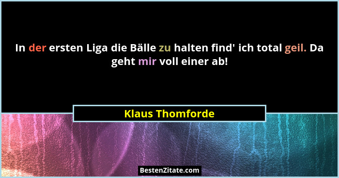 In der ersten Liga die Bälle zu halten find' ich total geil. Da geht mir voll einer ab!