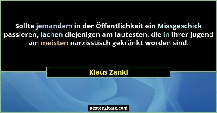 Sollte jemandem in der Öffentlichkeit ein Missgeschick passieren, lachen diejenigen am lautesten, die in ihrer Jugend am meisten narzisstisch gekränkt worden sind.