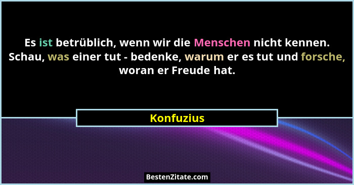 Es ist betrüblich, wenn wir die Menschen nicht kennen. Schau, was einer tut - bedenke, warum er es tut und forsche, woran er Freude hat.