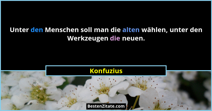 Unter den Menschen soll man die alten wählen, unter den Werkzeugen die neuen.