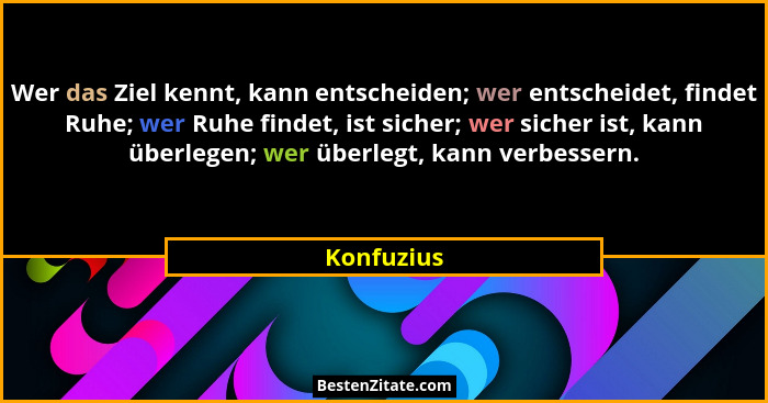 Wer das Ziel kennt, kann entscheiden; wer entscheidet, findet Ruhe; wer Ruhe findet, ist sicher; wer sicher ist, kann überlegen; wer überlegt, kann verbessern.