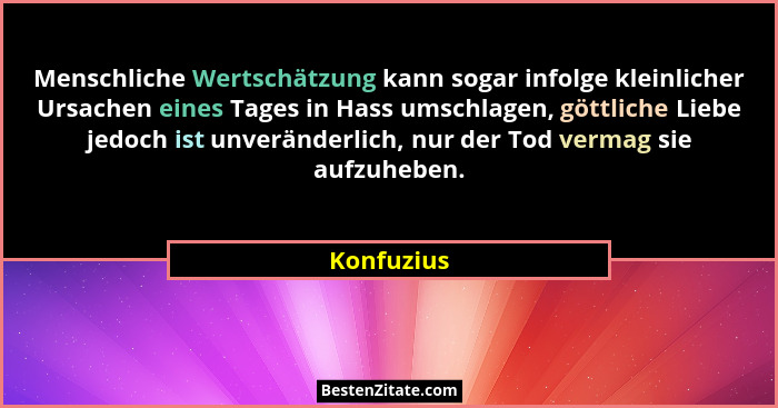 Menschliche Wertschätzung kann sogar infolge kleinlicher Ursachen eines Tages in Hass umschlagen, göttliche Liebe jedoch ist unveränderlich, nur der Tod vermag sie aufzuheben.